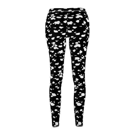 Women's Cut & Sew Casual Leggings (Black with White spots)
